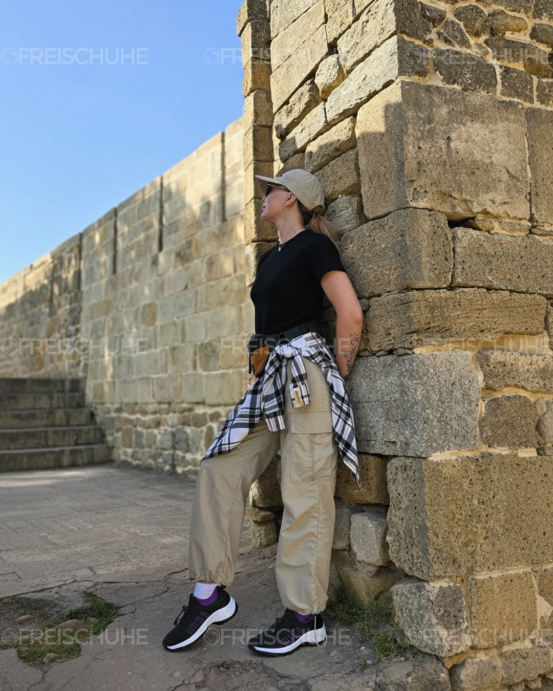 „Im Urlaub stundenlang neue Orte entdecken und trotzdem fühlen sich meine Füße leicht und entspannt an. Diese Schuhe sind perfekt für Reisen voller Bewegung und Komfort.“