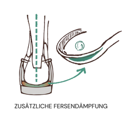 Fersen-dämpfung reduziert die Stoßbelastung an der Ferse, während die tiefe Fersenschale den Fuß stützt und die Plantarsehne entlastet.