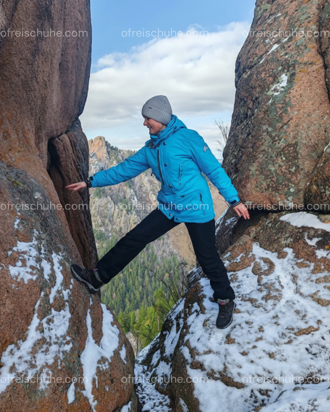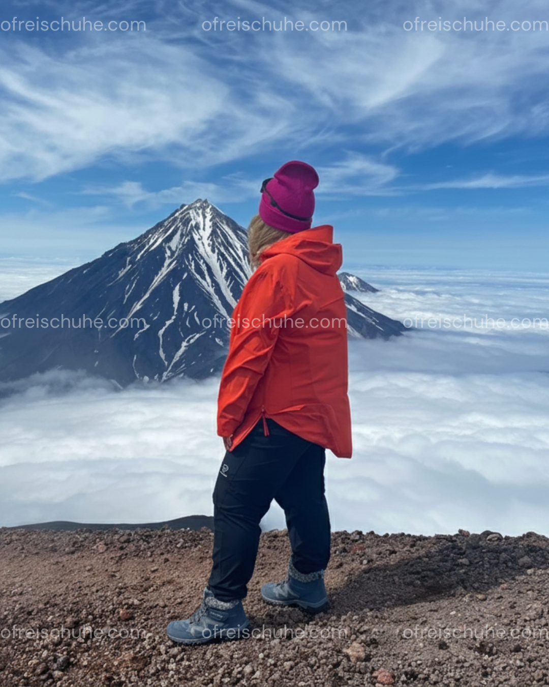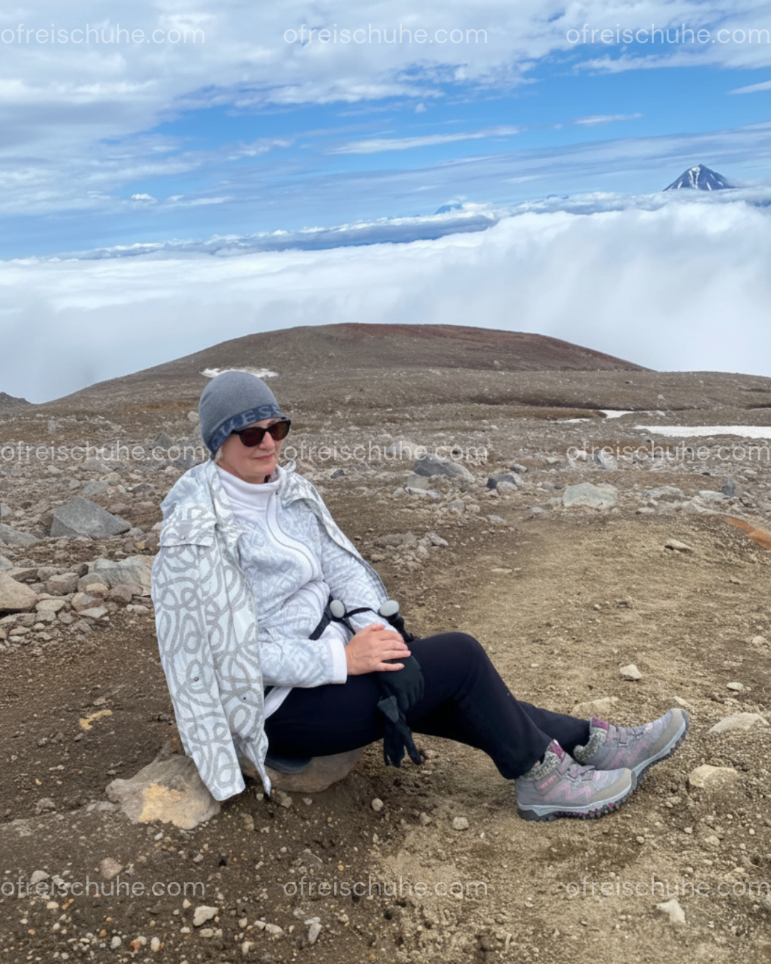 „Sitzend auf dem Gipfel, umgeben von Wolken und Bergen, ein unvergesslicher Moment. Die Schuhe hielten meine Füße warm und gaben mir sicheren Halt im Winter.“